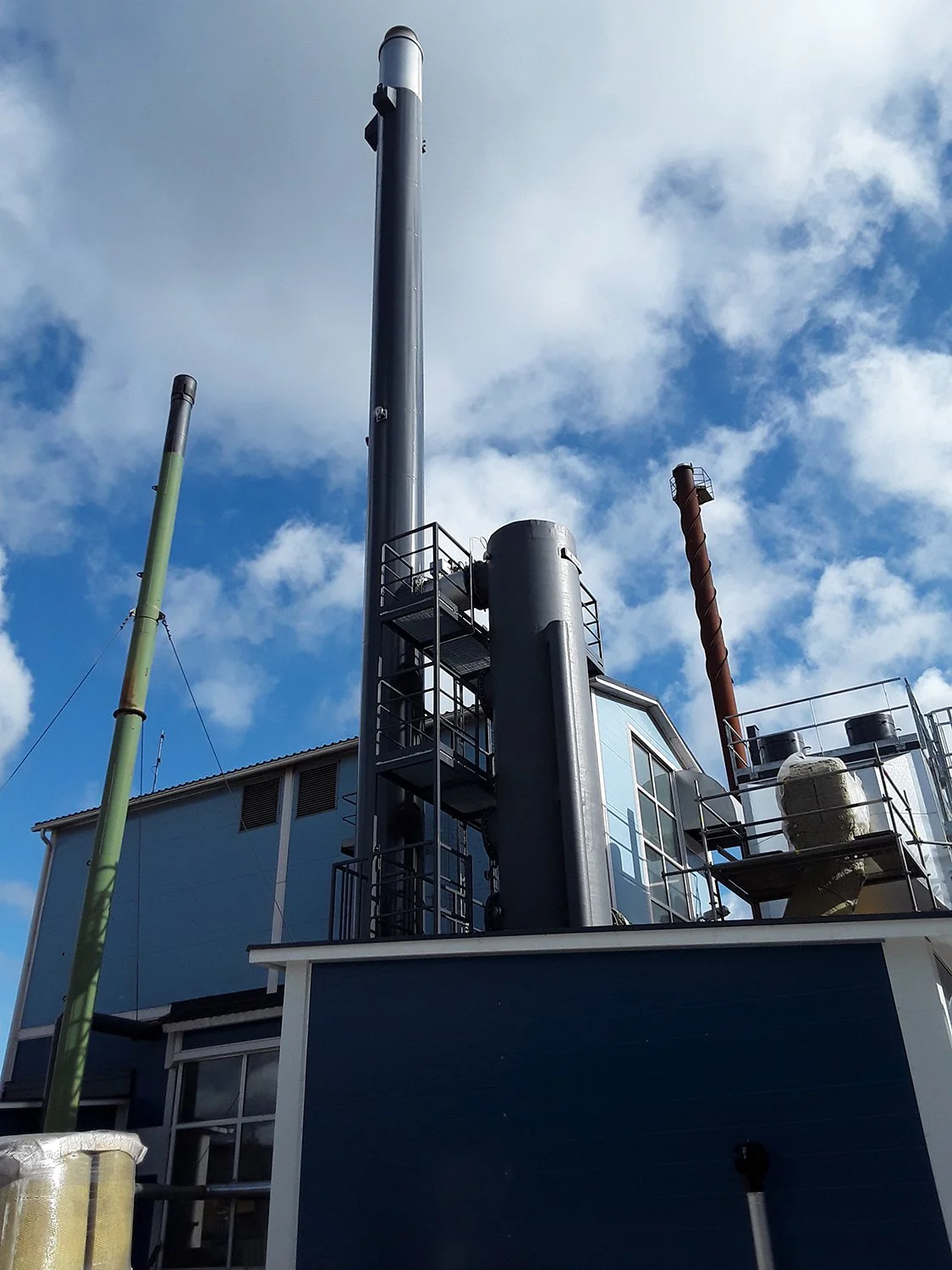 Savukaasun puhdistus ja lauhduttava lämmöntalteenotto. Lämmön talteenottoteho 3,14 MW